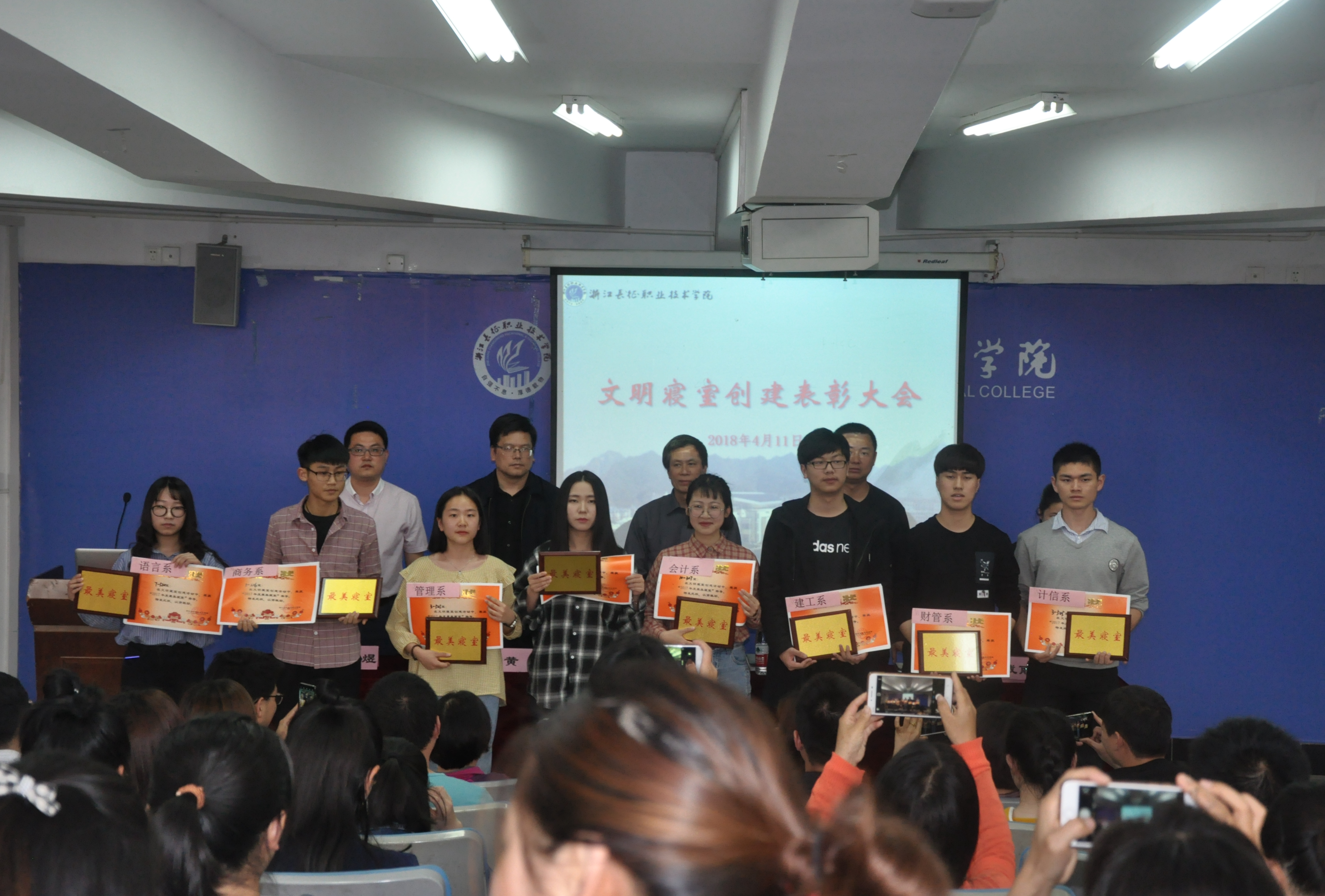 4月11日下午,我校对2017年度文明寝室创建工作进行总结表彰,学生处、保卫处、总务设备处、团委和各系领导及辅导员、教师代表、学生代表、各系宿管会干部代表、宿舍管理员代表共计260多人参加了会议。会议由学生处陆栋煜处长主持,分管院领导出席并讲话。