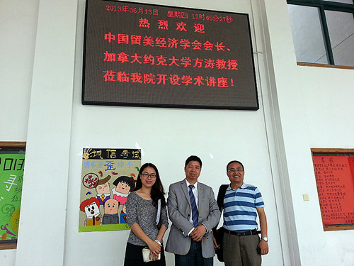 2013年6月13日,应我院管理学院管理系、浙江民营中小企业发展研究中心的邀请,中国留美经济学会会长、加拿大约克大学终身教授方涛博士(Tony Fang, Ph.D.)以“中小企业发展的中外对比” 为题在学院第一会议室做了一场专题学术讲座。讲座由管理系副主任范平老师主持,她对方涛教授为我们所做的这场学术讲座表示了热情的欢迎,学院督导高晓红教授、管理系及兄弟系部的部分专任教师和优秀学生代表聆听了这场精彩的讲座。