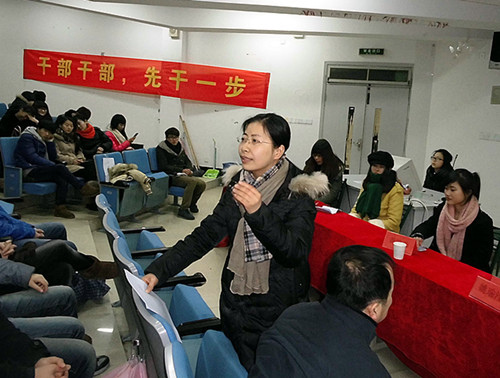 本次动员工作首先以引导学生干部发挥模范带头作用为重点,于2013年1月3日晚,在1218教室召开了全系学生干部诚信考试暨复习迎考动员大会。大会首先邀请了三位学生代表许丽丽、马淑贤、黄珍珍与现场同学互动交流。三位学生代表既是奖学金获得者也是学生干部,他们分别就学习态度、考试复习方法、学习与工作如何平衡等问题与现场同学分享了自己的心得感想。随后,系主任李庆海老师、系党总支副书记姚瑜滢老师以及系辅导员易烈翔老师也先后对三位学生代表的发言作了精彩点评,同时还结合自己的学习经历和生动的典故为同学提供学习指导,并特别强调了“诚信考试”的重要性,决不能心存侥幸,投机取巧,因小失大。大会结束时,所有与会老师、学生干部还在“诚信考试、努力复习迎考”的横幅上踊跃签字响应倡议。
