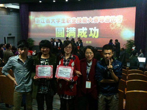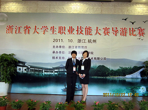 10月26日至28日,由浙江省教育厅主办的2011浙江省大学生职业技能大赛导游比赛在浙江旅游职业学院落下帷幕。本次大赛设中文组和英文组两组,全省共有23所院校,共计84位选手参加了比赛。评委会由省旅游局、省广电总局、省优秀旅游企业等多个单位构成。