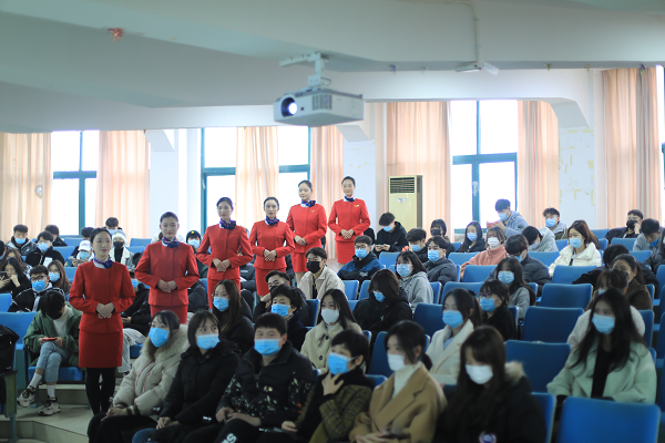 为展示空乘专业学生风采,1月6日,贸易系空中乘务专业在第二教学楼2218教室举办了一场空乘专业职业技能展示汇演,全体19级和20级空中乘务专业学生观看并参与了此次汇演,贸易系主任王珍、党总支副书记高计龙、学工办主任严雪娟等师生观看了本次汇演。