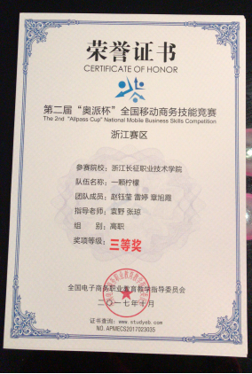 2017年11月,第二届2017年“奥派杯”全国移动商务技能竞赛浙江赛区在湖州举办。本次比赛旨在激发、调动行业企业关注和参与移动商务专业建设的主动性和积极性,检验和展示高职院校移动商务专业教学成果,以赛促建、推进移动商务专业在全国职业院校中的布点建设。
