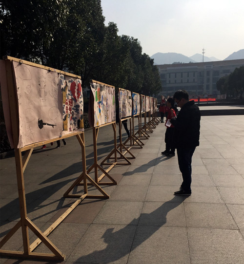 2015年12月8日中午12点半,我院“校园内杜绝吸烟”团支部海报、漫画设计大赛评选活动在图书馆前的阶梯广场顺利举行。学院各系50名学生代表为参加展览的122幅海报和123幅漫画进行了投票。