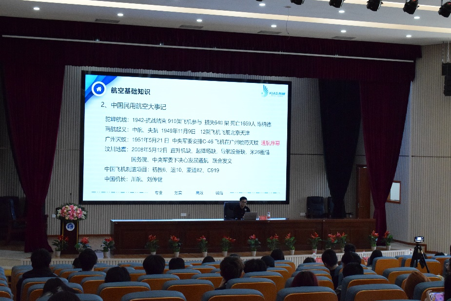 黄志结合自身从业经验,围绕航空基础知识、通用航空简介、通用机场简介和通航就业选择四大板块,带领同学们领略了通用航空行业的前景及魅力。