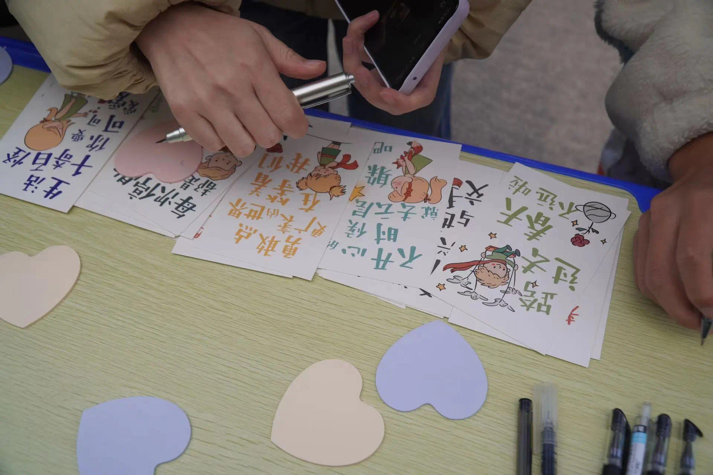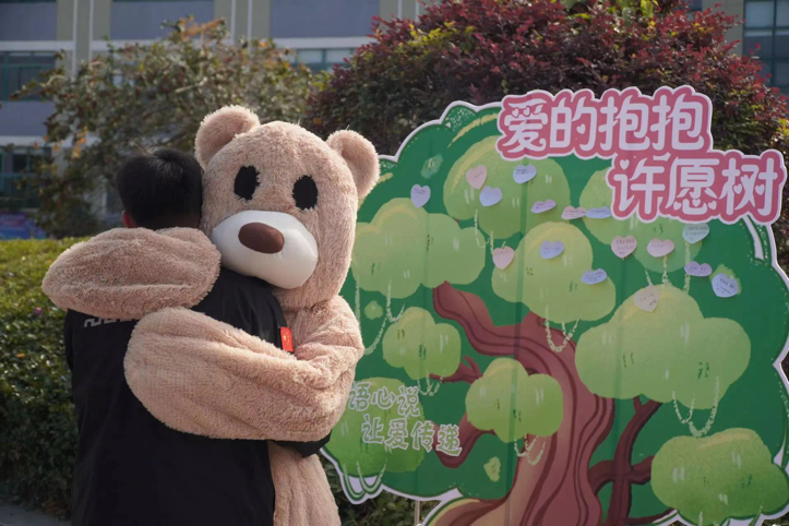 本次活动由“爱的抱抱”“解忧杂货铺”两个环节组成。活动现场形象可爱的卡通人物吸引了路过的师生们,大家纷纷与小熊温暖互动,释放焦虑情绪,并主动在“心愿树”上留下自己对家人和朋友最真挚的祝福、鼓励、感谢,以及对自己的反省或是对未来的期望,帮助被焦虑困扰的同学舒缓忧虑。活动过程丰富有趣,同学们积极参与,现场氛围热情高涨。