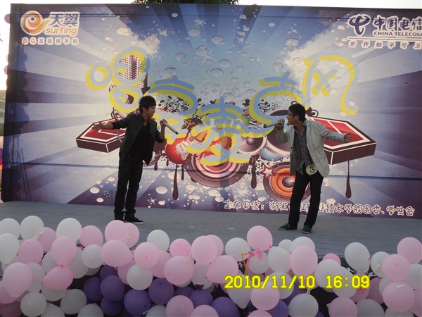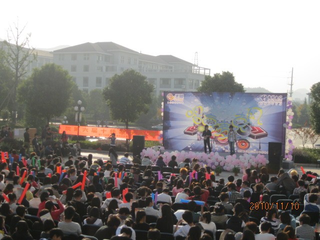 2010年11月10日下午3点,我院第六届“电信杯”校园十佳歌手大赛总决赛在体院馆前广场举行,众多音乐“达人”齐聚一堂,共同感受音乐的魅力。来自各系的15名同学参加了本次决赛的角逐。院党委副书记洪骏老师,副院长贺旭辉教授,团委书记陶元老师出席了本次活动,参加本次活动的还有我院一体两翼学生干部及各系的学生会主席和学生代表,大家齐聚一堂享受了这场饕餮盛宴。
